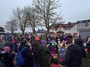 Mit rund 150 Teilnehmern war der diesjährige Laternenumzug zu St. Martin in Haldorf am Sonntag, den 9.11.2025 wieder sehr erfolgreich. Die 1. Vorsitzende der Arbeiterwohlfahrt, Irmela Wunderlich, begrüßte um 17:00 Uhr die Gäste auf dem Sportplatz. Katja Neid von der Kita Villa Kunterbunt begleitete die Kinder beim gemeinsamen Singen mit der Gitarre.