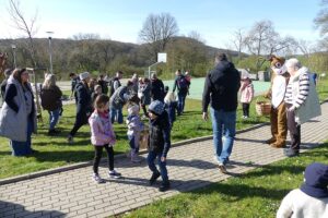 06.04.2026Die 1. Vorsitzende des Ortsvereins Haldorf der Arbeiterwohlfahrt, Irmela Wunderlich, begrüßte zusammen mit dem Osterhasen am Ostermontag, den 6. April 2026 über 50 Kinder mit ihren Eltern bei herrlichem Wetter zum diesjährigen 61. Ostereiersuchen am Spielplatz.