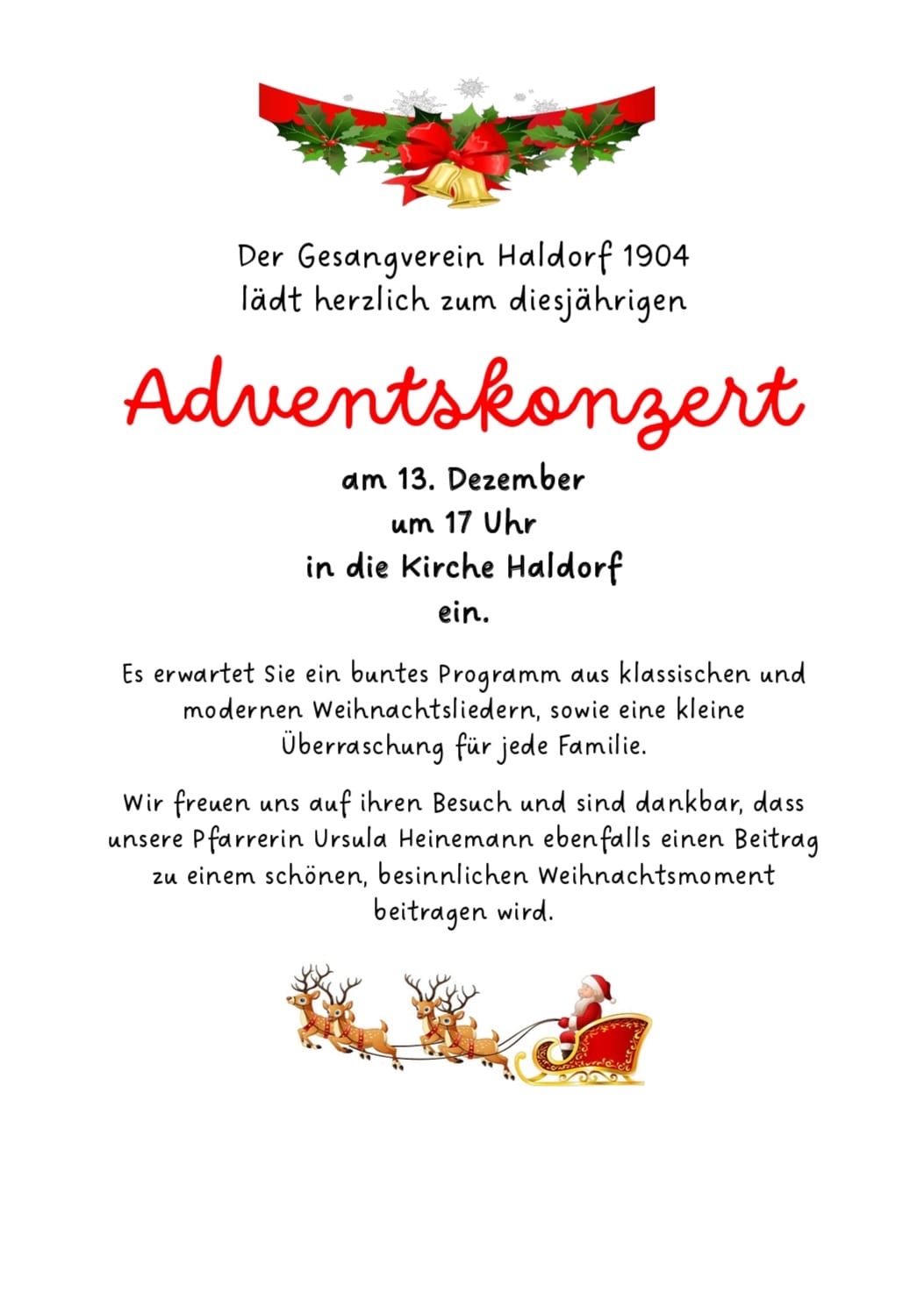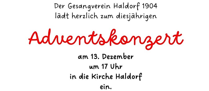 Der Gesangverein Haldorf 1904 lädt zu einem Adventskonzert am Sonntag, den 13. Dezember 2025 ab 17:00 Uhr in die Haldorfer...» weiterlesen