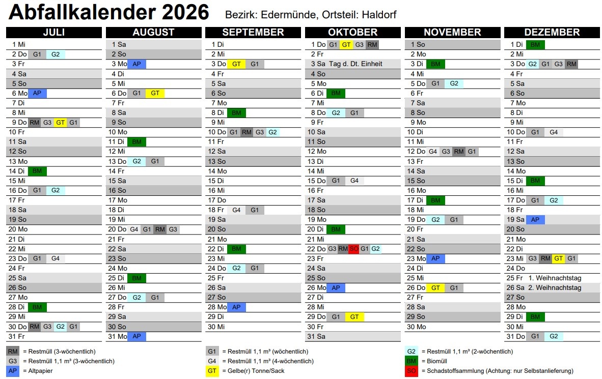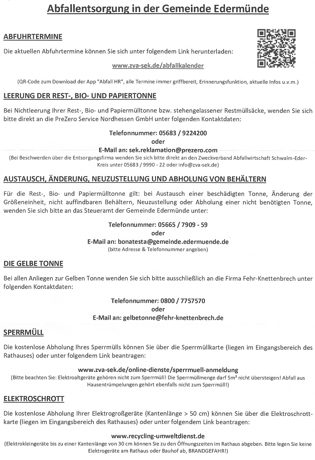 | Reklamationn Restmüll, Papier und Biomüll | Prezero Service Nordhessen GmbH, Trieschweg 11, 34590 Wabern, Tel. 05683/9224200 sek.reklamation@prezero.com |