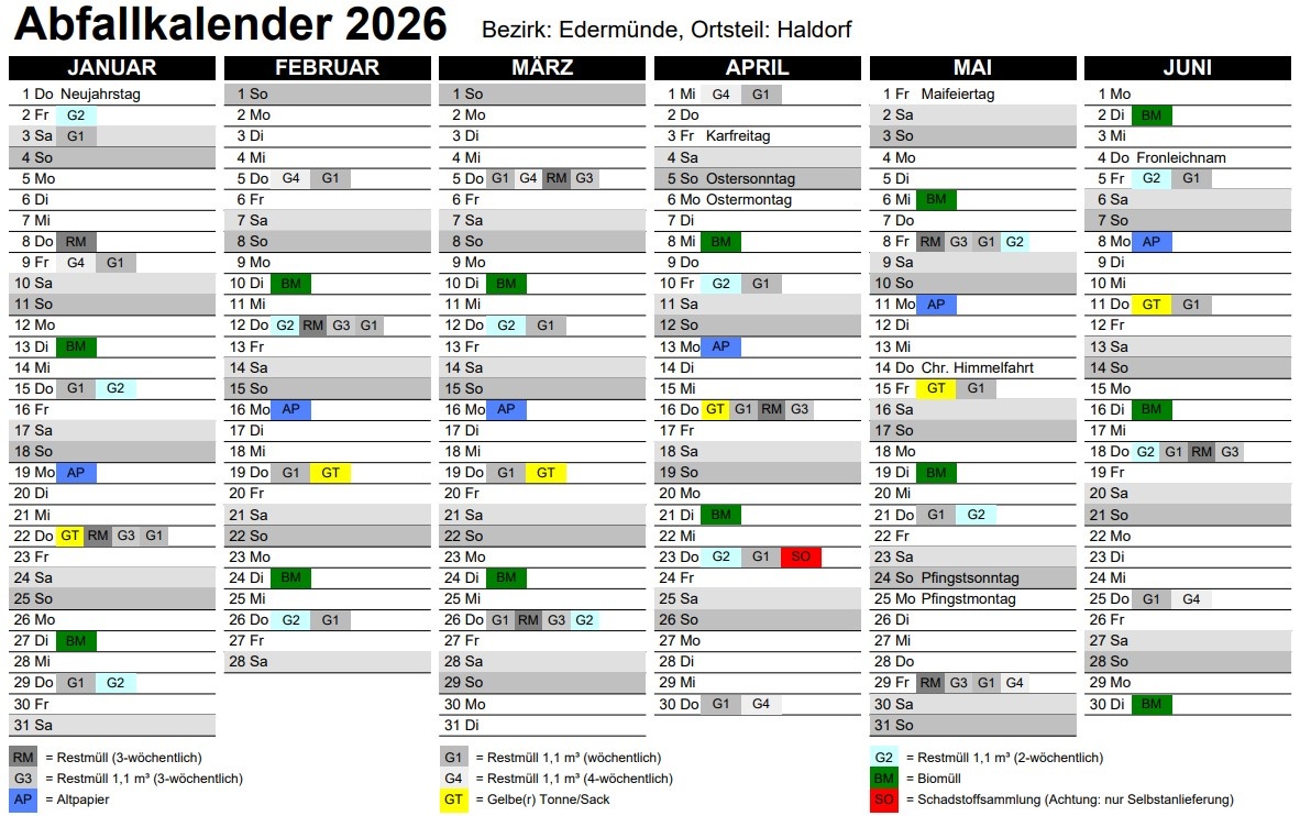 | Sperrmüll | Abholung per Abrufkarte oder im Internet unter www.zva-sek.de |