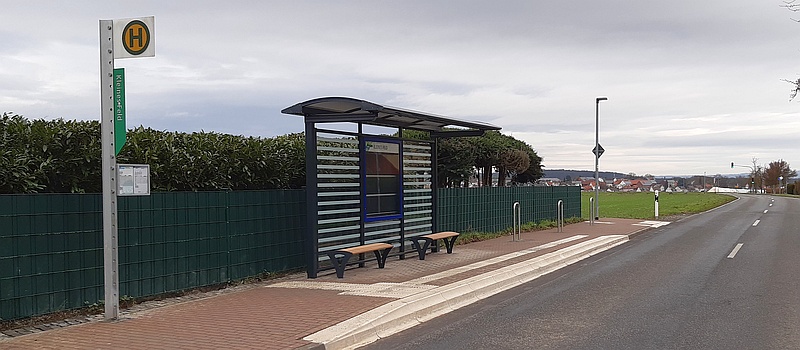 Die Bushaltestelle „Kleines Feld“ in der Grifter Straße hat einen Unterstand für die Fahrgäste und drei Fahrradanlehnbügel erhalten. Allerdings hat der Unterstand einen geringen Dachüberstand und keine Seitenwände, d.h. ein Wetterschutz ist nur bedingt gegeben.