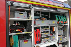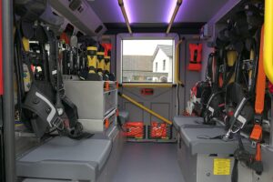 Viele Funktionen lassen sich im Führerhaus per Touchdisplay ausführen. Das Fahrzeug besitzt einen ausfahrbaren Lichtmast. Die auf dem Dach befindliche Leiter lässt sich mit nur einer Person ausfahren. Weiterhin kann die Fahrzeugbesatzung bereits während der Fahrt zum Einsatzort die Atemschutzausrüstung anlegen. Diese Ausstattungsdetails dienen dazu die Einsatzzeiten vor Ort zu optimieren. Der Anschaffungspreis des Fahrzeugs hat 430.000,00 Euro betragen.