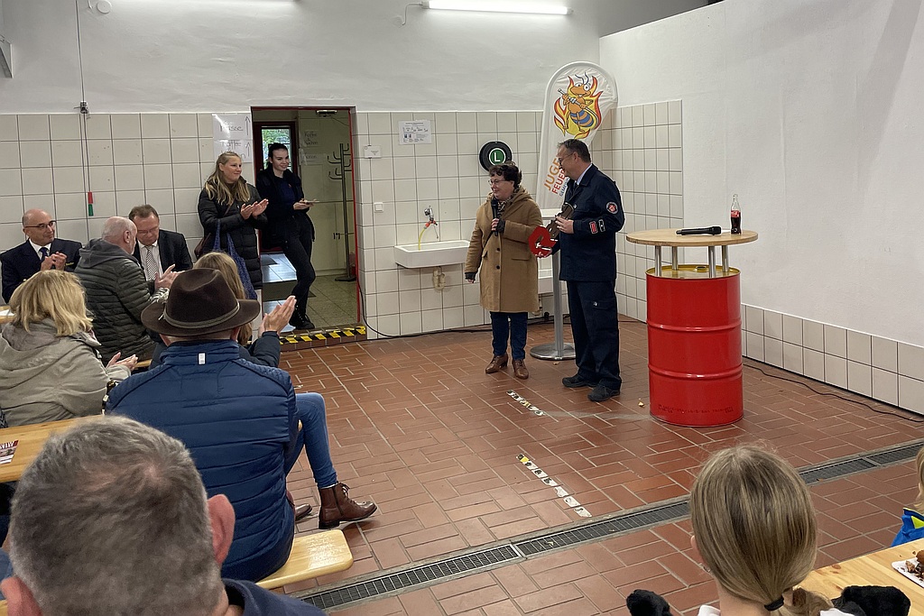 Die Einsatzabteilung der Edermünder Feuerwehr hat am Samstag, den 25.10.2025 das neue Löschfahrzeug der Öffentlichkeit bei Kaffee und Kuchen im Haldorfer Feuerwehrgerätehaus vorgestellt. Wehrführer Robert Haberecht begrüßte zur Indienststellung neben der 1. Beigeordneten Ruth Pfannstiel und Landrat Winfried Becker zahlreiche interessierte Edermünder Gäste.